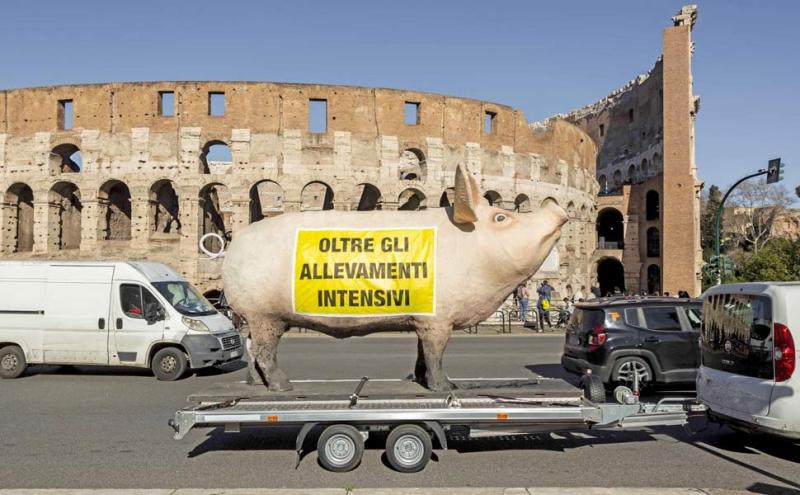 Ø l’enorme numero di animali allevati in modo intensivo nel nostro Paese (più di 700 milioni all’anno) richiede un grande uso di risorse, spesso sottratte al consumo diretto umano (due terzi dei cereali commercializzati nell’Unione Europea diventano mangime e circa il 70% dei terreni agricoli europei è destinato all’alimentazione animale);