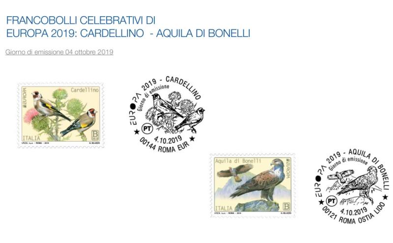 Dedicati a cardellino e aquila di Bonelli i due francobolli di Europa 2019