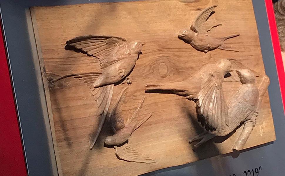 E veniamo al 25 marzo, quando con una bella cerimonia alla presenza (vedi foto sopra) del Ministro dell’istruzione Marco Bussetti, di tanti sindaci dei comuni vicini, di Chiara Manghetti (responsabile Educazione e formazione), che ha portato i saluti della Lipu, e un’ospite d’onore per tanti anni Socia Lipu: Rosita Missoni. La cerimonia si è tenuta presso le scuole del paese alla presenza di circa 200 ragazzi e molti insegnanti. Fra le azioni celebrative è stato inaugurato un bassorilievo ligneo da posizionare nelle scuole della città (vedi foto sotto)