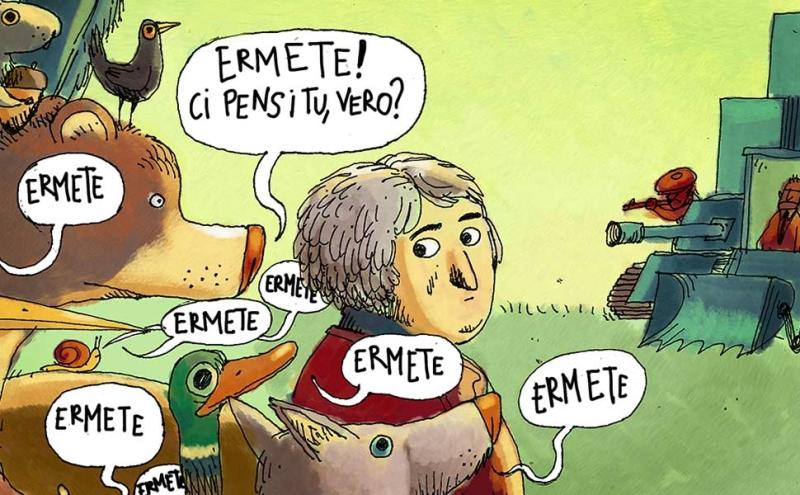 L'autore della tavola - L'illustratore Federico Appel è nato a Roma nel 1979. Visto che ama darsi tante arie diremo che ha conseguito un dottorato in Letteratura Italiana presso l'Università "La Sapienza" di Roma, che è stato professore a contratto di "Letteratura per l'infanzia" nella stessa Università , che ha pubblicato saggi sulla fantascienza, l'avventura, la bicicletta e il fantastico, e che è redattore di una piccola ma gloriosissima casa editrice per ragazzi. Ha illustrato vari libri.Con le Nuove Edizioni Romane due romanzi: Le memorie di Alessandro e Il sosia di Napoleone ; Con Sinnos ha pubblicato invece due romanzi a fumetti: Pesi Massimi e La leggenda di Zumbi l'immortale, con Fabio STassi.