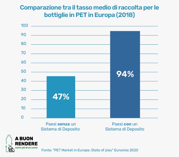 L’Italia ha bisogno di un Sistema di Deposito Cauzionale per raggiungere gli obiettivi di raccolta e riciclo europei e per ridurre l’inquinamento dei suoi mari, delle sue campagne e delle sue città. La piccola somma (“deposito”) aggiunta sul prezzo di vendita delle bevande che viene restituita nella sua totalità, quando la bottiglia o lattina viene riportata in un punto di raccolta, ne garantisce il buon fine.