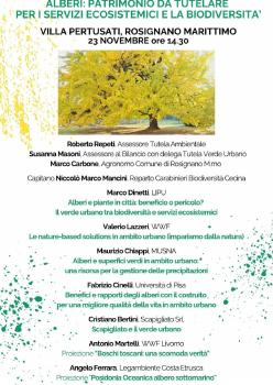 Due appuntamenti aperti al pubblico sull’importanza del verde urbano nelle nostre città. Il primo è in programma sabato 23 novembre a Rosignano Marittimo, in provincia di Livorno, alle 14,30, con il convegno Alberi: patrimonio da tutelare per i servizi ecosistemici e la biodiversità, organizzato dal Comune di Rosignano Marittimo.