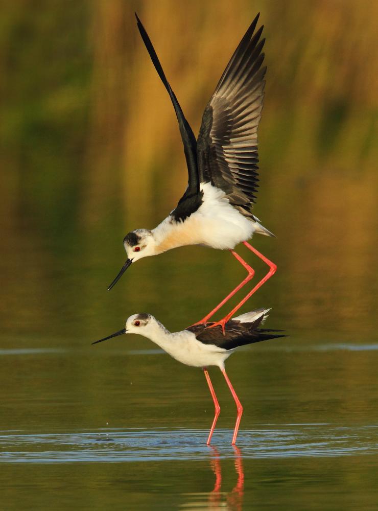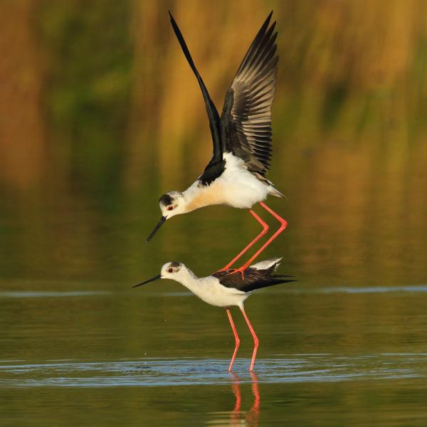 Si nutre di insetti e piccoli invertebrati, ma anche alghe e resti di vegetazione acquatica, il pulcino di Cavaliere d’Italia esce dal nido molto presto, poche ore dopo la schiusa.